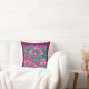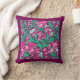 Travesseiro de William Morris, Art Nouveau, impressão têxtil de irises e folhas, melhorado digitalmente e colorido, em fúcsia e rosa-gelo, verde-pavão, e branco, sobre fundo roxo de vinho profundo