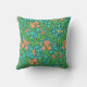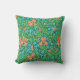 Travesseiro de um William Morris, Art Nouveau, impressão têxtil de iretos e folhas, melhorado digitalmente e colorido, em laranja-tangerina, verde limão e aqua macia, num fundo profundo de turquesa/tétano