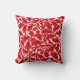 Travesseiro decorativo de William Morris Art Nouveau, padrão têxtil - folhas de carvalho e galhos em vermelho chinês profundo, acentuados com preto, sobre fundo branco
