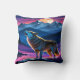 Almofada Wolf Howling Sob Lua Completa Sobre Montanhas