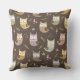 Perfeito para amantes de corujas, este padrão adorável mostra corujas pastéis bonitinhas em um fundo verde. Há também cogumelos e verde. Este travesseiro decorativo acrescenta um excelente a um quarto ou berçário de crianças com temas de floresta. Também faz um belo aniversário, Natal ou outro presente de Natal para meninos e meninas que amam corujas. A cor marrom de fundo pode ser alterada, de acordo com sua preferência.