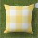 Uma almofada externa amarela brilhante e branca com um padrão de xadrez gingham em grande escala. O xadrez amarelo superdimensionado traz energia ensolarada e alegre para assentos de pátio, móveis de jardim ou cadeiras à beira da piscina. Um padrão alegre que ilumina instantaneamente qualquer espaço externo com um estilo de verão aconchegante.