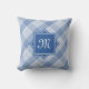 Almofada Xadrez Azul Chic Com Monograma Diagonal Moderno