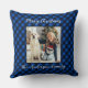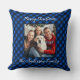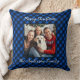 Almofada Xadrez Azul de Fotografia Personalizada do Natal d