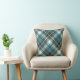 Este travesseiro decorativo mostra um padrão de xadrez em azul-lacrimogêneo e marrom, combinando o estilo do eterno com a elegância moderna