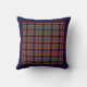 Três travesseiros decorativos de tamanho diferente em um padrão de xadrez com uma borda de azul com um contorno fino vermelho. Veja a minha loja para combinar itens para a casa.