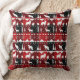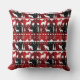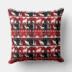 Um travesseiro de xadrez de búfalos vermelho e preto que apresenta um padrão de camisola nórdico de animais brancos de inverno como uma rena, uma raposa ártica e uma família de ursos polares, com estrelas, cones de pínus e flocos de neve.