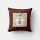 Este travesseiro de padrão de xadrez de búfalos apresenta um monstro de neve de yetti fofo, luzes e um campo de texto para você adicionar um nome ou saudação. Um presente de decoração ideal para uma criança ou outra.