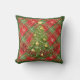 Travesseiro decorativo de Natal verde, xadrez branca e uma brilhante árvore de Natal e palavras, "Feliz Natal".
