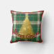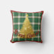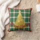 Travesseiro decorativo de Natal verde, xadrez branca e uma árvore de Natal de ouro cintilante e palavras, "Feliz Natal".