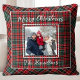 Travesseiro decorativo de Xadrez de Natal Russo da Família Foto. Xadrez moderna de Natal vermelho e verde com nome de família personalizado.