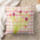 Travesseiro decorativo em cor de pêssego, rosa e laranja, floral em fundo xadrez, branco pode ser mudado para qualquer cor para ser coordenada com o decoro doméstico.