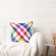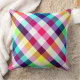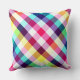 Um travesseiro decorativo de 20" x 20" com um padrão de xadrez colorido design em cores arco-íris.