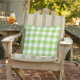 Uma almofada externa xadrez gingham verde lima ousada e branca com um padrão de xadrez vibrante em pequena escala. O gingham verde animado traz estilo enérgico de festa de jardim para assentos de pátio, cadeiras de convés ou descanso ao lado da piscina. Um padrão divertido que combina bem com sotaques externos florais e sólidos.
