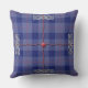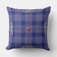 Nós chamamos o design original da HomeWare neste Travesseiro de 20” de “Mad Plaid in Blue”. O padrão é um xadrez básico em tons de azul heather. Sobre este fundo há duas linhas vermelhas onduladas, uma horizontal e uma vertical, que se cruzam no centro do design. As linhas são tridimensionais, projetando sombras no xadrez, e há um botão vermelho redondo no centro, onde as linhas se cruzam. Sobre as extremidades das linhas vermelhas, nos quatro lados, há blocos de linhas brancas onduladas e texturizadas. Há também linhas pontilhadas vermelhas passando pela parte azul mais clara do xadrez. Parece um pouco como um pacote, todo selado e colado com fita. Daí o nome "Mad Plaid in Blue".