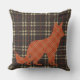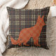 Raposa de xadrez laranja sobre fundo xadrez castanho-escuro