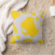 This throw pillow features a lively pattern of organic yellow shapes scattered across a clean white background, creating a cheerful yet contemporary abstract aesthetic.