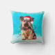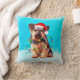 Yorkshire Terrier Dog Sentado na neve com o Travesseiro da Praça Santa Hat de Natal. Uma ideia perfeita para alguém que ama esta raça de cães.