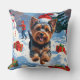 Almofada Yorkshire Terrier em neve com chapéu de Natal
