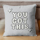 Add a touch of encouragement to your space with this cozy throw pillow featuring the bold affirmation “YOU GOT THIS.” Set against a soft gray background, the crisp white lettering with black outline makes a confident statement, while the surrounding star-like sparkles add a hint of magic and motivation. Whether placed on your bed, sofa, or reading nook, this pillow offers daily inspiration and warmth. It’s a perfect gift for someone going through a big moment or a gentle reminder for yourself that you’re capable, strong, and ready for whatever comes next.