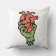 Um travesseiro decorativo branco ousado com um gráfico impressionante de uma mão zombie verde segurando um coração anatômico vermelho. Perfeito para fãs de gótica, horror ou decoração temática de Halloween. Esta design adiciona um talento artístico sujo a qualquer sala ou coleção de estação assustadora.