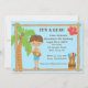 Comece a comemorar com este adorável convite do Luau. Seja um churrasco de quintal ou uma festa de aniversário de criança, este é o convite perfeito para você! Tem uma estrutura de madeira de madeira de carvalho com uma palmeira no canto esquerdo. Há um garoto adorável segurando uma guitarra ao lado da árvore. Ele está vestindo calções azuis e tem cabelo castanho. No canto superior direito há uma flor vermelha de hibisco. Veja os muitos outros designs e produtos desta linha. ©JW Ilustrations