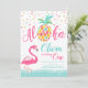 Aloha Pineapple Flamingo Birthday Convite Rosa