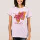 T-shirt feliz e colorido de NewparkLane -, com uma flor havaiana exótica do hibiscus no vermelho, no rosa e na laranja. Com um fundo cor-de-rosa macio e "Aloha!" na tipografia vermelha do roteiro do divertimento.