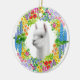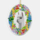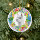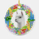 O design original das belas artes de uma alpaca amigável cercada por uma grinalda floral colorida pelo artista Carolyn McFann do estúdio de ronrom de dois gatos imprimiu em um ornamento cerâmico contemporâneo do feriado para tudo que ama alpacas!