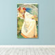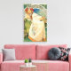 Alphonse Mucha Princess Hyacinth canvas. Poster litográfico de 1911. O artista checo Alphonse Mucha criou alguns dos mais deslumbrantes anúncios e posters do período art nouveau. Princesa Hyacinth é uma obra que apresenta uma bela garota vestindo uma coroa de cristal com flores vermelhas em seu cabelo. A mulher segura um floco de neve cristalina e se senta num vestido de cor creme. Atrás dela, a poster é ornamentada com um intrincado padrão de estrelas, coroas e outras formas. Acima lê-se o texto "Princesna Hyacinta." Um belo presente para fãs de Alphonse Mucha, art nouveau, posteres vintage e anúncios.
