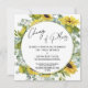 A distinção deste simples conjunto deve-se à fonte moderna, escrita à mão, usada para frases-chave, e às belas imagens florais. Nessa peça, o roteiro elegante foi usado para criar um gráfico com as palavras "Mudança de Planos". O texto é enquadrado numa coroa circular de girassóis e eucaliptos aquosos. Um buquê de coordenação também aparece no verso. Use os campos de modelo para adicionar seus detalhes pessoais e tornar este design moderno seu próprio. Estão também disponíveis peças com texto alternativo. Por favor, responda a quaisquer solicitações especiais ou personalize a assistência. 151 //