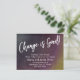 Mantenha seus amigos e familiares atualizados com seu novo endereço usando esses cartões de anúncio simples e elegantes. Quer você seja um recém-casado ou apenas queira uma design única para deixar sua tribo saber como encontrá-lo, esta carta é versátil o suficiente para qualquer um. Ele apresenta gráficos de tipografia bonito que leem "Alterar é bom" na frente e "Permanecer em contato!" na parte de trás, usando uma fonte moderna, casual e escrita à mão. Use os campos modelo para adicionar todos os seus próprios detalhes para personalizar este design para seu próprio uso. Coloquei um fundo verde-verde-cinza escuro sobre-exposto em um gradiente verde-mbre corajoso, curvo e translúcido que consegue um efeito texturizado único. A imagem inclui azul, framboesa e ouro. Se você substituísse isto por uma imagem de fundo diferente, isso também é possível! 105 //