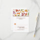 Cartões RSVP de Variação bonito e colorida projetados com seus detalhes personalizados de data RSVP impressos em laranja e marrom em branco com um fundo com tema de outono das folhas mudando de cor em verde, laranja, roxo e amarelo ao longo do topo. Personalize estas placas RSVP para seus casamentos outono durante os meses de outono.