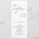 Esses programas de casamento elegantes e modernos minimalistas de design de altura apresentam uma caligrafia simples e elegante emparelhada com uma simples serifa. Esses programas de casamento de chá são planos com frente e trás. A sua festa de casamento e obrigado está no verso. Ver peças correspondentes nesta coleção de casamento.