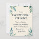 Aluno Excepcional é um cartão de agradecimento sincero projetado para educadores que desejam reconhecer e celebrar o sucesso dos alunos. Com um design de aquarela botânica suave com folhas verdes e manchas sutis douradas em um fundo bege quente, este cartão transmite uma mensagem de encorajamento e positividade. Sua redação universal o torna adequado para alunos de todas as idades e origens. Seja usado em salas de aula, cerimônias de formatura ou notas pessoais de reconhecimento, este cartão elegante ajuda os professores a expressar gratidão e inspirar o crescimento contínuo.