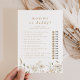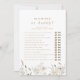 Este palpite sobre quem é a mamãe ou o chá de fraldas da Coleção Alyssa é perfeito para um chá de fraldas de primavera ou de verão ou para um bebê. A design botânica apresenta flores brancas silvestres e texto dourado com uma elegante sensação moderna. Personalize as perguntas, se quiser. Solicite placas impressas e/ou uma versão imprimível que você pode impressão localmente ou em casa.