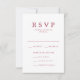 Nossos cartões de resposta ao casamento "Amado" de chico apresentam uma paleta clássica de burgundy e branca que é perfeita para casamentos a qualquer momento do ano. O reverso das elegantes cartas RSVP de casamento apresenta um design de padrão tradicional ligado. Personalize os cartões de resposta do casamento de na moda com seus detalhes de casamento personalizados e opções de janto!