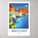 This Amalfi Coast, Italy travel poster showcases the iconic beauty of southern Italy’s coastline through a refined, timeless design. Inspired by classic European travel art, the composition highlights dramatic coastal cliffs, Mediterranean architecture, and the relaxed elegance that defines the Amalfi Coast.