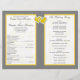 Este programa ou ordem de casamento floral amarelo, cinza e branco de 8,5"x11" tem flores amarelas ouros, uma fita amarela IMPRESSA e um par de corações unidas com brilho e diamante IMPRESSOS que corresponde ao convite de casamento mostrado abaixo. Ele foi projetado para ser dobrado pelo centro. ****NOTE que o papel de mais alto é um estoque de cartão e não se dobra bem (racha o design). Todo o texto é personalizável. Envie um e-mail para niteowlstudio@gmail.com se precisar de assistência para a personalização ou se tiver perguntas ou solicitações. Eu ficaria feliz em inventar seu programa usando fontes mais extras do que aquilo que sou capaz no Zazzle. Apenas me envie um e-mail.