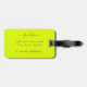 Etiqueta de bagagem com uma vibrante sombra de amarelo chamada "fluorescente amarela" Saia da multidão e mande sua bagagem sem esforço com esse acessório audível e luminoso. Ele apresenta fontes elegantes de script de cinza escura.Chic e Trendy design por Alma Wad.Personalize ambos os lados com seus detalhes agora. ___________ Yellow está associado ao sinal de Gemini na astrologia ocidental. Você pode considerar isso ao escolher sua cor.
