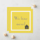 Este anúncio em movimento, de cor amarela, tem uma fronteira branca e as palavras "Avançámos" na frente. No verso, você pode personalizar o cartão com seu novo endereço e número(s) de telefone.