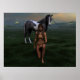 Fantasia, caçadora de arte amazônica com um cavalo de pinto nas montanhas, fantasia, poster de arte. Personalizar licença ccl