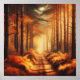 Bring the calming essence of autumn into your home with “Amber Forest Path with Sunbeams,” a beautifully detailed poster print that captures the quiet majesty of nature. This artwork features a forest path illuminated by soft sunbeams, surrounded by tall trees in full autumn bloom. The ground is scattered with golden leaves, while shafts of light filter through the amber foliage, creating a magical, almost dreamlike atmosphere that invites introspection and stillness.
