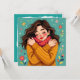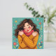 Um cartão de vazio de arte folclórica e engraçada com uma garota de um suéter confortável se abraçando. Lembre-se de que o amor próprio é importante com esta bonito ilustração do ai.