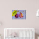 Ameixas selvagens de cozinha ou de jantar. Ameixas pintadas em aquarela e guache. Ameixas escolhidas de sebes em Hockley, Essex, Inglaterra. Depois adicionei a um fundo de pintura de sucata que tinha na canvas e pedaços de texto adicionados colocados sobre o topo. Produzida exclusivamente pela Sarah Trett.