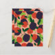 Grama de suculência fresca com ameixas ilustradas e cerejas com folhas verdes espalhadas em fundo rosa.