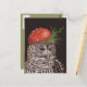 coruja barrada com chapéu de ferramentas no cartão-postal
