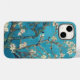 Um caso no iPhone 14 com o quadro poste impressionista de Vincent van Gogh, Blossoming Almond Tree (1890). Um céu aqua brilhante com flores floridas.
