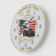 250º aniversário da cinza Americana e relógio de ouro com águia e bandeira Americana. Uma lembrança do aniversário do nosso país. O texto pode ser personalizado clicando no botão "personalizar este design". América deus abençoe. Ver a toalha de calendário correspondente a 2026: https://www.zazzle.com/2026_calendar_towel_god_bless_america_250_years-256530137569055337