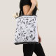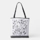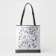 Este saco de tota é mostrado com uma impressão de folha fresca em tons pretos e cinzas. No topo da frente está uma coroa icônica americana em preto. Exemplo de texto no topo para você personalizar. Preto/cinza multicolorido sobre branco. Texto e imagem coroa apenas na frente. O dorso tem a mesma impressão de folha. Imagem de coroa licenciada e foto de estoque.